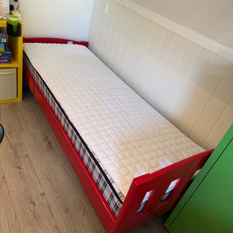 Daybed-rammen er 18cm over gulvet, evt plass til flate esker under.