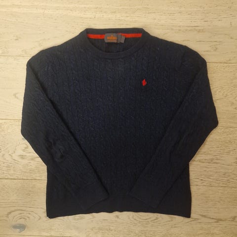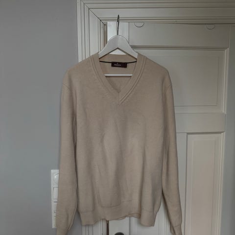 Selger en Morris Crewneck (V-hals) i størrelse Small. En stilren og klassisk gensar i 100% bomull, med enkel og tidløs designprofil.