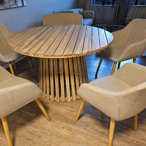 På grunn av flytting må vi selge vårt flotte spisebord og stoler. Dette er kvalitetsmøbler fra Aannø Sigma, som ble kjøpt på Møbelringen i 2011 og er tatt veldig godt vare på. Stolene er utrolig komfortable å sitte på og lette å rengjøre.