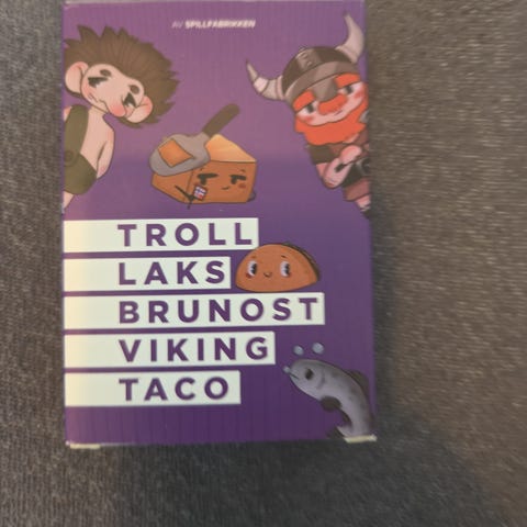 Troll Laks Brunost Viking Taco kortspill med 54 kort. Spillet inneholder ulike kategorier som troll, laks, brunost, viking og taco. Kortspillet er designet for underholdning og kan brukes til å spille med venner og familie.