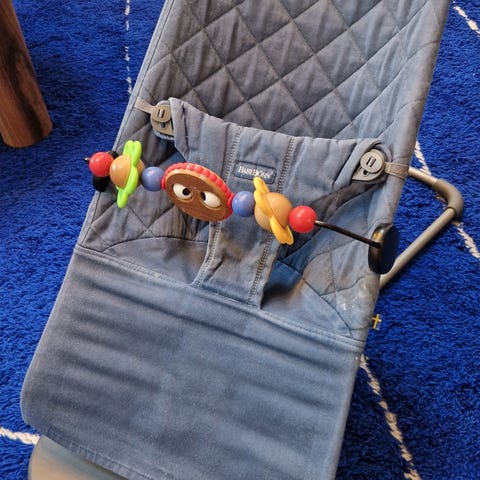 Grå Babybjörn Vippestol og Babybjörn treleke til vippestol selges.