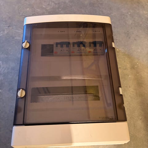 Garo sikringsskap selges. Skapet har plass til flere sikringer og er egnet for elektrisk installasjon i bolig eller næringsbygg. Sikringene følger med.