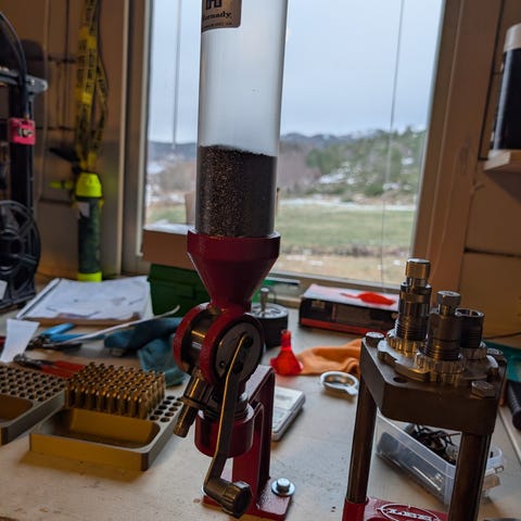 Fungerer utmerket for oppmåling av krutt til lading av rifle og pistol.