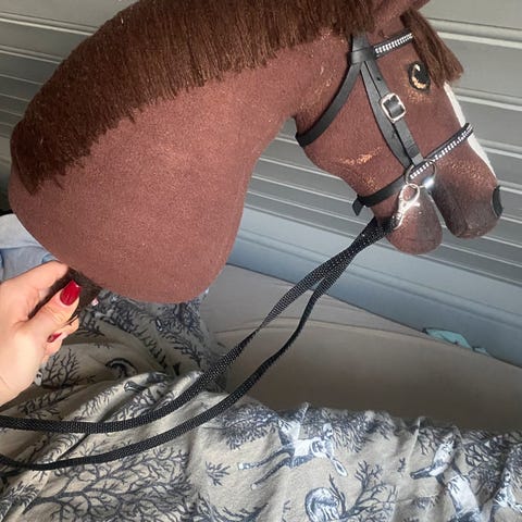 Selger disse to kjepphestene, 1840kr samlet med utstyr på bildene, utstyret passer til begge hestene☺️eller: