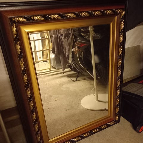 Speil med dekorativ gullramme.