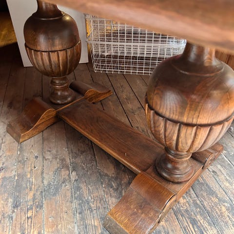 Etter mine oldeforeldre selges et antikt spisebord i heltre eik (antar det er eik da det er veldig tungt). Bordet er rikt utskåret og jeg antar at dette er laget 1850 - 1900. Det har gått i arv i generasjoner og kan for alt jeg vet også være eldre.