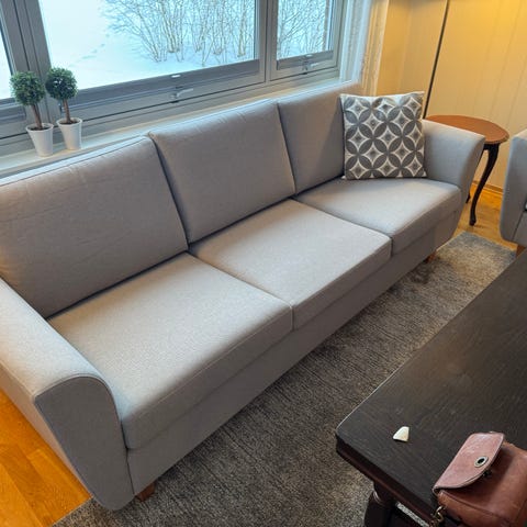 Småflekker her og der. Men aldri tatt av trekket for vasking, så de forsvinner nok.