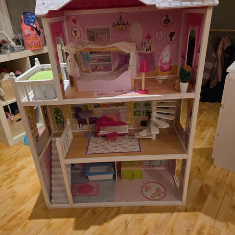 Stort dukkehus i 3 etasjer selges da det ikke blir lekt med.
