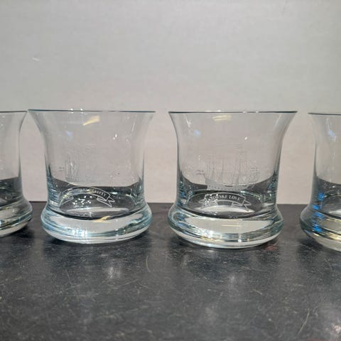 Skuteglass fra Magnor. 2 stk. Kong Sverre og Løwendahls Galley. Høyrde 11, 5 cm