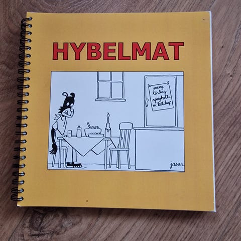 Hybelmat er en kokebok med spiralinnbinding. Boken inneholder oppskrifter og matlagingstips tilpasset mindre kjøkken og enkel matlaging.