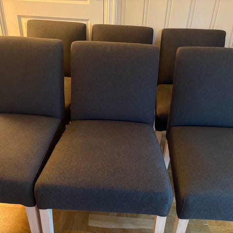 Spisestuestoler kjøpt på Møblia selges billig.