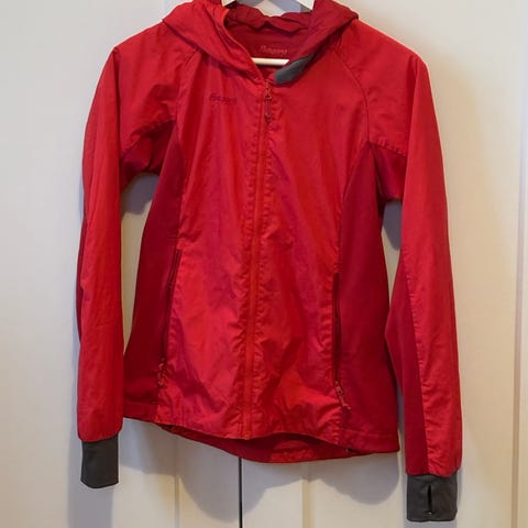 Snorer nederst og i hetten for å stramme og tette for vind. Borrelås nederst på ermet.