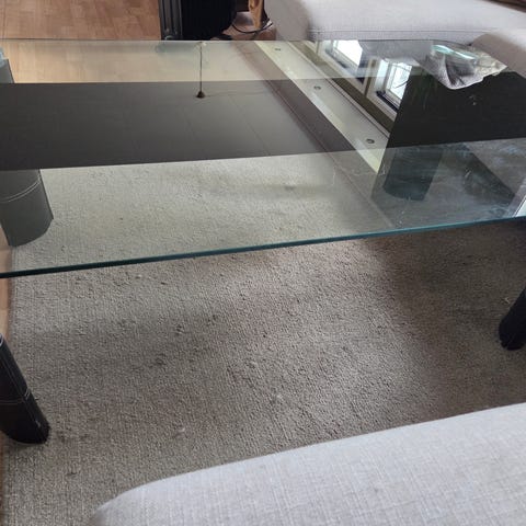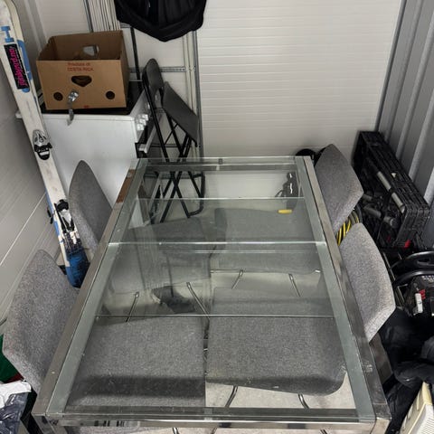 Pent spisebord med glassplate selges, da det ikke lenger er behov for det.