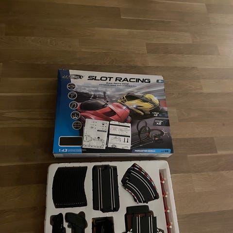 Carrera Go!!! racerbilbane sett som inkluderer flere banedeler og to biler i forskjellige farger. Settet er laget for elektrisk drift og egner seg for innendørs bruk. Passer for barn og voksne som ønsker å bygge og kjøre på en modellbilbane.