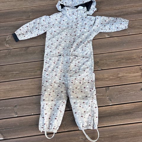 Gullkorn design, vinterdress, str 104/4år. Nyvasket. Hel uten hull, men kan skimte noen flekker enkelte steder (fremkommer ved nærbildene). Mangler fotstropper og knapper til disse.
