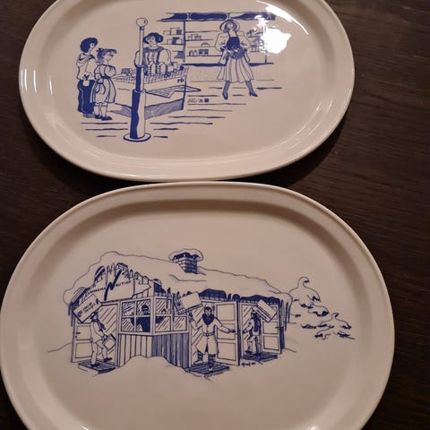 Tre flotte eldre fjøler i stengods fra danske Nymølle.