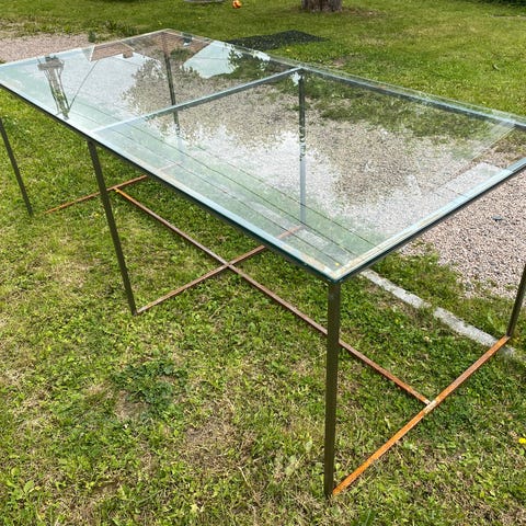 Glassplater i ulike størrelser med gjennomsiktig og delvis stripet design. Passer til bruk i bygg, innredning eller andre formål som krever glassflater.