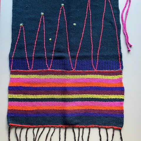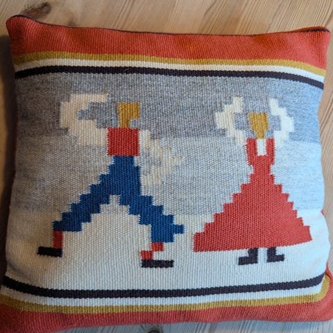 norsk - håndarbeid - håndvevd - husflid - håndsøm - håndsydd - pyntepute - sofapute - norsk design - billedvev - blomster - lilla - grønn - rød - blå - gul - dekorativ - vintage - retro - modern - tekstilkunst - folkekunst - kunsthåndverk