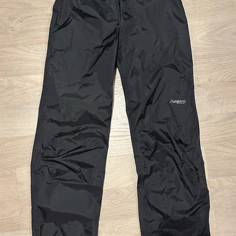 Bergans svart vanntett regnbukse i størrelse 152, 12 år. Teknisk bukse som ogdå er vindtett og pustende. Passer for både gutter og jenter (unisex). Buksen har elastisk justerbar midje, og forsterkede partier på sete og innside ankel. To glidelåslommer foran.