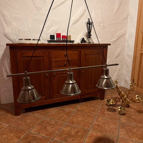 Enkel og grei taklampe/lysekrone selges da vi har fått tak i ny. Fungert helt fint i mitt eie. Fra leverandør Globen AB, antatt kjøpt et eller annet sted i Sverige en gang i tiden.