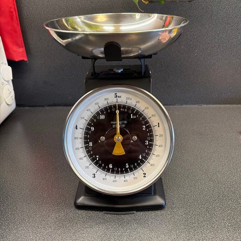 Hario vekt for kjøkkenbruk med tydelig måleskive. Egnet for nøyaktig veiing av ingredienser ved matlaging og baking.