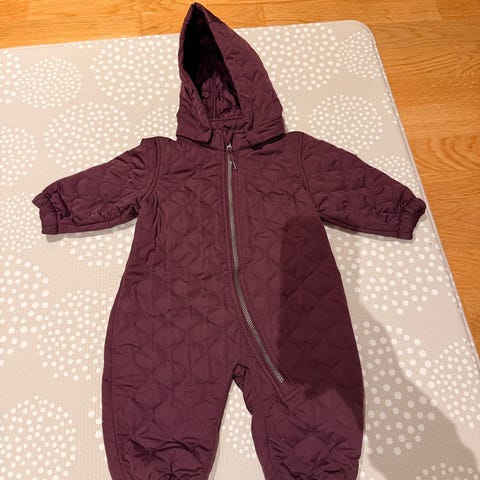 Deilig og varm dress til baby fra Name It. Dressen er foret med fleece, og føttene kan brettes over for å holde tærne varme. Størrelse 62/68. Nydelig lilla/støvlilla farge.