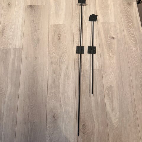 Selger to vakre og solide lysestaker i sort smijern beregnet for gulv. Disse har et tidløst design med plass til 6 vanlige stearinlys i hver, noe som gir et fantastisk lysspill når de er tent. Stakene har ulik høyde, noe som gjør dem svært dekorative å plassere sammen som en gruppe, men de fungerer også utmerket hver for seg. Ideelle for å skape stemning ved festlige anledninger, bryllup eller mørke vinterkvelder. Talg er foreløpig ikke fjernet da noen ønsker den slik da dette tar tid å bygge opp. Kan fjernes lett med å ha den i en bøtte med varmt vann.