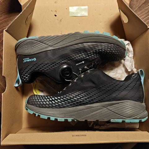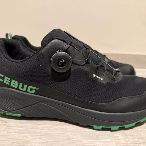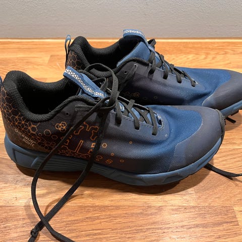Pent brukte løpesko med pigger. Kun brukt på kalde dager med glatt føre siste to sesonger. Mye sko igjen.