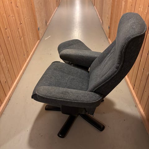 Fotskammelen matcher stolens materiale og farge, og gir støtte til føttene ved bruk.