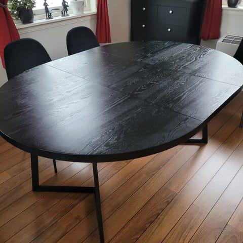 Nydelig rundt spisebord i Mahogny. Det er solid bygget i heltre. Kun finer rundt kanten. Veldig fint holdt. Diameter på bordplaten er 103 cm. Har ikke ileggsplater. Høyde 70 cm. Må hentes.