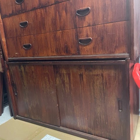 To 120 lange, 65 høye og 45 dype skjenk, og en kommode 60x65 høy og 45 dyp. God stand, den ene har topp i dårligere stand enn de andre 2. Hentes på Nordnes.