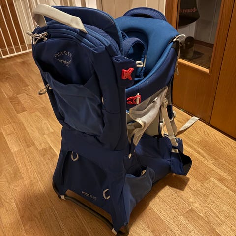 Bæremeisen er godt brukt men har massevis av bruk igjen. Den er veldig behagelig og stabil å ha på, selv om den føles mest som en ryggsekk å ha på. Barnet sitter godt og har en myk pute å kvile fjeset på.