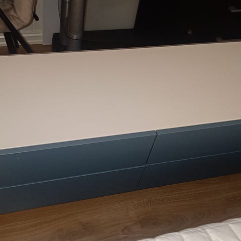 Godt brukt BESTÅ TV-benk selges. Har to store skuffer med plass til oppbevaring + smal hylle.