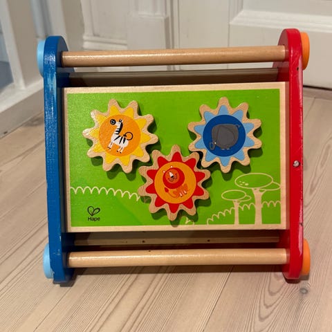 Pent brukt draleke, tog med klosser som kan stables som man ønsker.