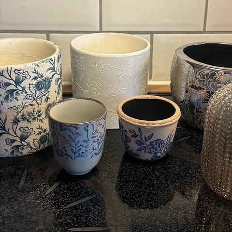 Flere potter selges samlet eller hver for seg. Egnet for innendørs bruk til planter.