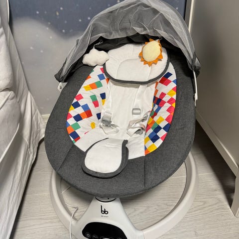 BBsmart elektrisk vippestol er en skikkelig vinner! Kanskje du trenger frie hender en liten stund? Her kan babyen ligge trygt og finne ro med bevegelse og musikk.