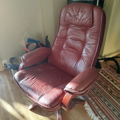 Selges billig grunnet kloremerke på siden etter katten. Se bilde. Lett å fjerne trådene som henger.