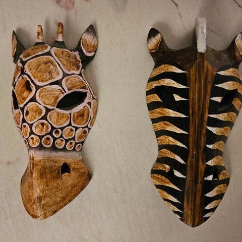 2 stk , rødt tre fra Kenya. Ca 33 × 15 cm.