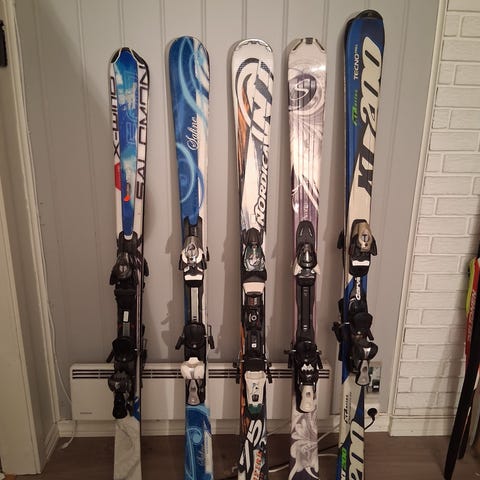 Elan E60 alpinski med lengde 135 cm. Skiene har full power cap konstruksjon med glassfiber materiale. Modellen er laget i Slovenia og har bindinger montert.