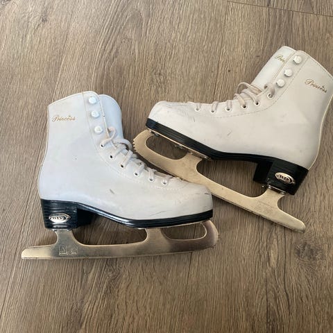 Justerbare ishockeyskøyter for barn i størrelse 34 til 37. Skøytene har svart og hvit farge og er designet for ishockeybruk. Passer til barn som trenger skøyter med mulighet for justering i størrelsen.