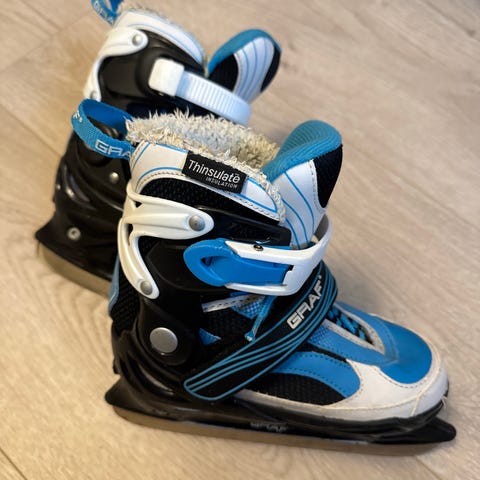Justerbare ishockeyskøyter barn størrelse 34-37 svart og hvit