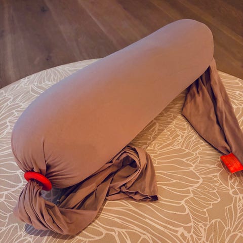 Selve puten er brukt uten synlige merker, men trekk har fått masse nupper. Den selges derfor billig. Fargen på trekk er dus rosa