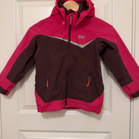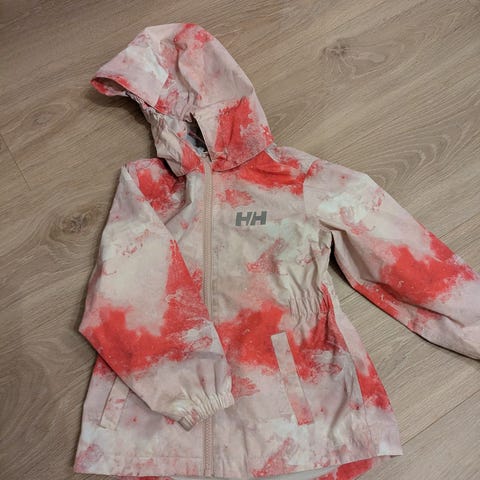 Helly Hansen Regular barnejakke i størrelse 98, designet for jenter. Jakken er rød og laget av 100 % polyamid. Den har hette og er laget for å gi beskyttelse mot vær og vind.