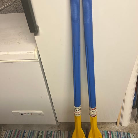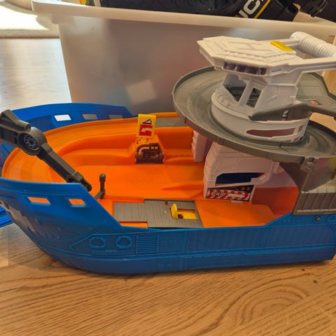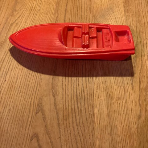 Gummibåt til lek. Årer og pumpe følger med. Har vært på vannet en gang. Eska er slitt