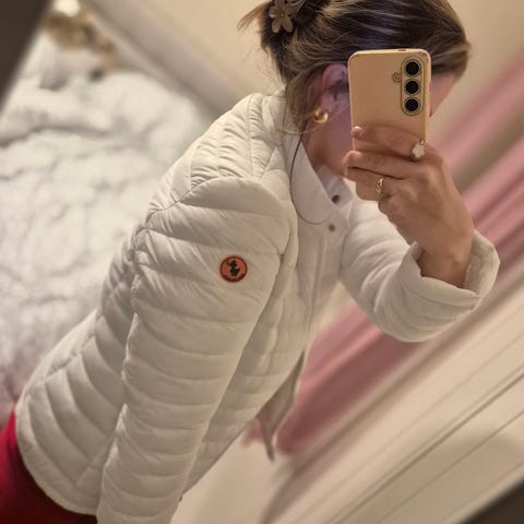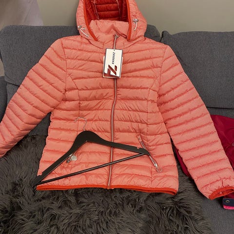 Save The Duck Ultra Light Jacket - korallfarget jakke for kvinner i størrelse 3/S. Jakken er laget av polyester. Den har en lett konstruksjon og hette.