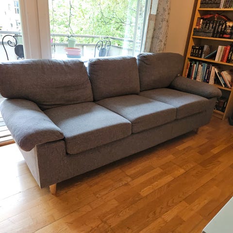 Selger en grå to seters sofa. Plass til tre personer :)
