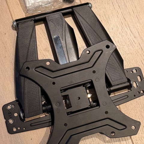 Dreibart veggfeste til TV, kjøpt i 2022. Modellnavn: One For All WM4459. Enkelt å installere. 180° dreiing og 20° vipping, integrert kabelorganisering og antiripe-beskyttelse. Egnet for hvilket som helst TV-merke i størrelser 32-65 tommer. Maks bærevekt 50kg.