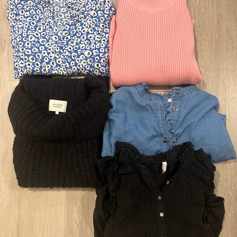 Klespakke til dame i størrelse M/L. Pent og lite brukt, noe er også nytt. 18 plagg. Merker som Zara, H&M, Samsøe, Indiska, 157 osv. MP 150kr