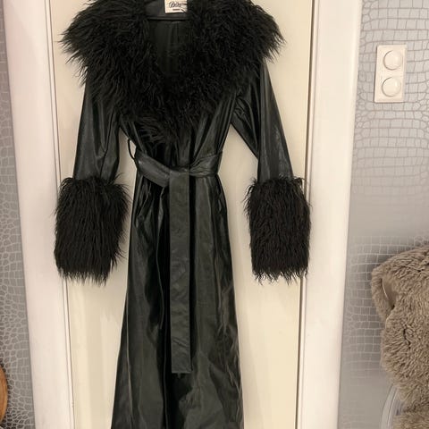 Svart ekte kaninpels jakke, kanadisk størrelse 1 (L) , brukt kun få ganger