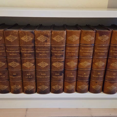 Store Nordiske Konversationsleksikon er en nordisk encyklopedi bestående av 26 bind. Her mangler bind 11 og 18.